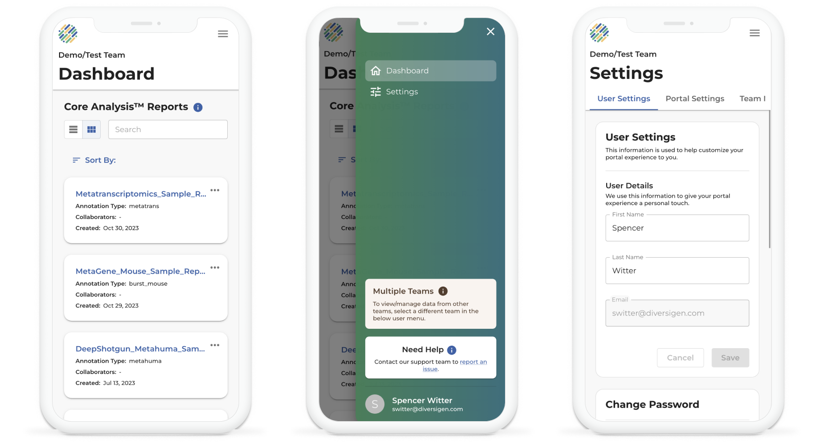 Following extensive testing and full approval of verification and validation documentation by the cross-functional team, the MVP for Customer Portal was released to customers of Diversigen in July of 2023. Users could now navigate to the Diversigen website and access their own personalized portal and retrieve their end-product reports on their own time.