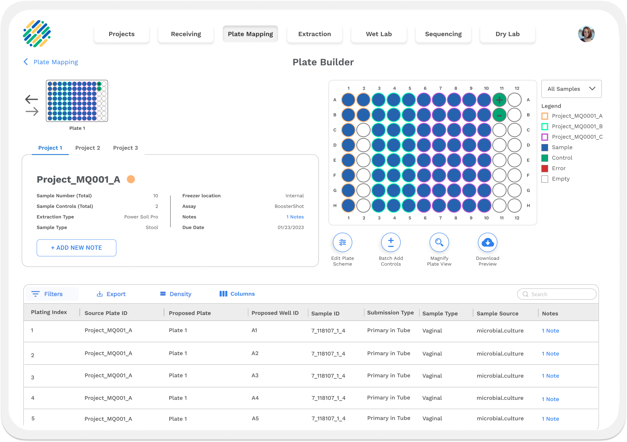 LIMS needed the ability to process multiple projects with like assays for extraction, in order to best optimize plate constraints, as well as save time and money during the extraction steps within the lab.